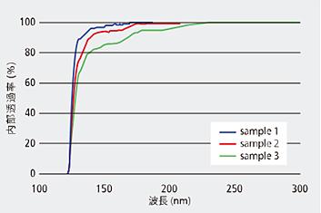 ・精密洗浄により有機物汚染等の影響を排除することで、特に紫外域の透過率を高精度に測定することが可能です。